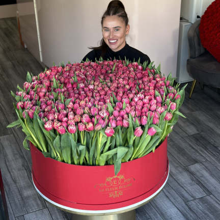 Price: $500.00Luxury Basket of 100 Pink Tulips