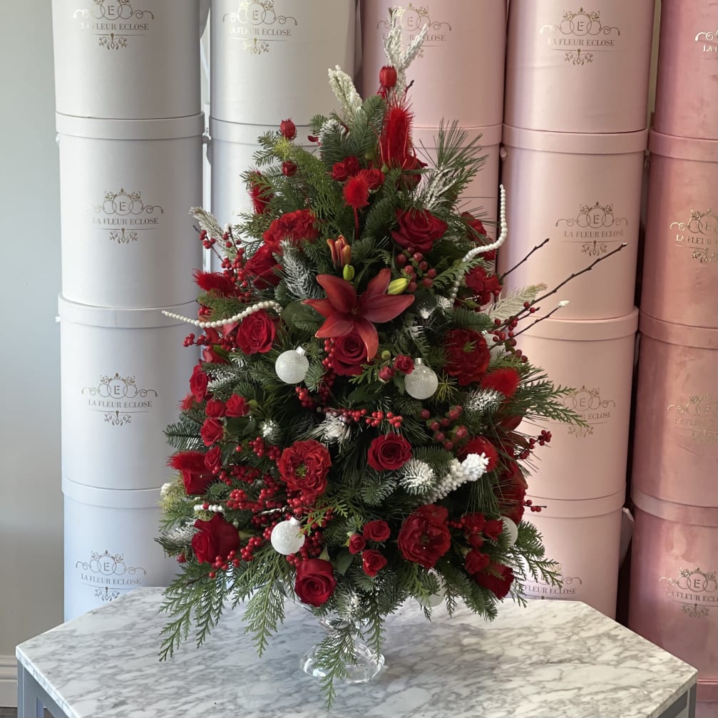Price: $200.00 Blush Holiday Wreath Gift Set — Eternal Roses, Luxe Candle & Artisan Chocolate Product Tags: Same-day Delivery
