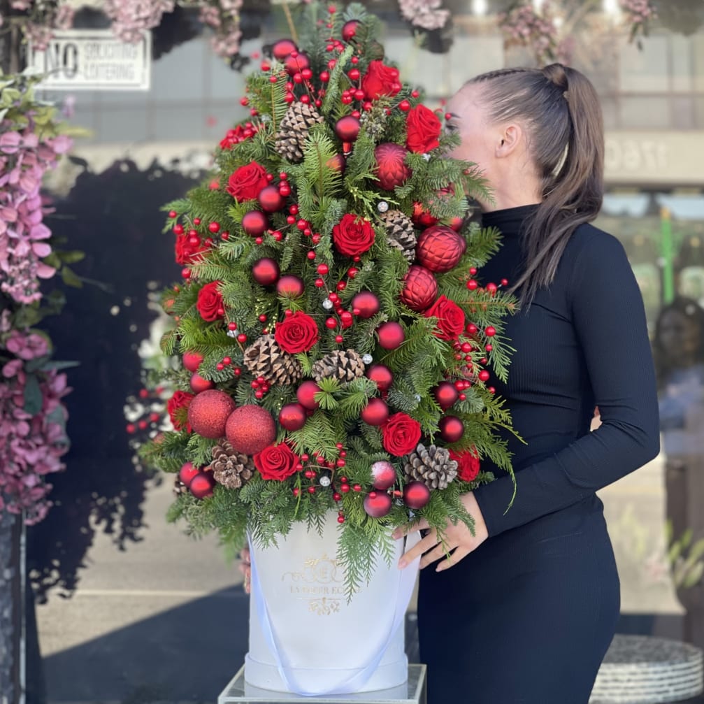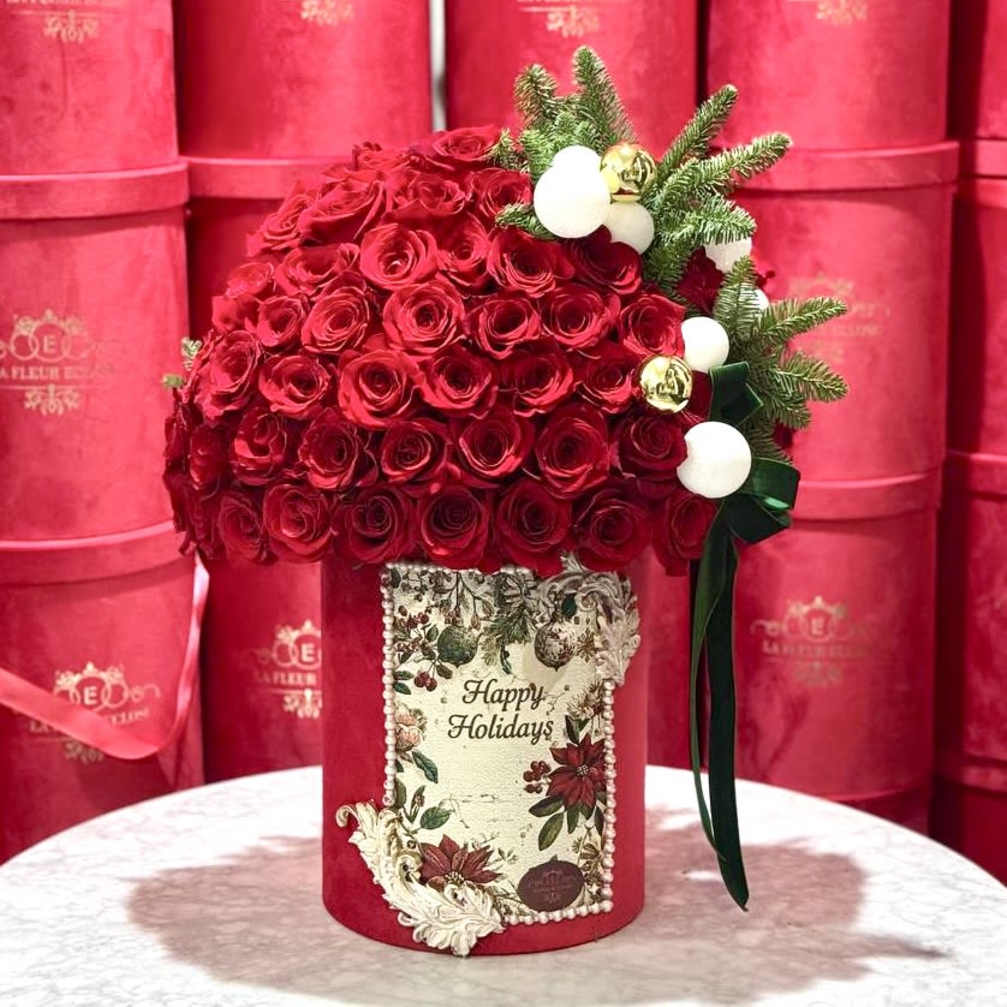 Price: $200.00 Blush Holiday Wreath Gift Set — Eternal Roses, Luxe Candle & Artisan Chocolate Product Tags: Same-day Delivery