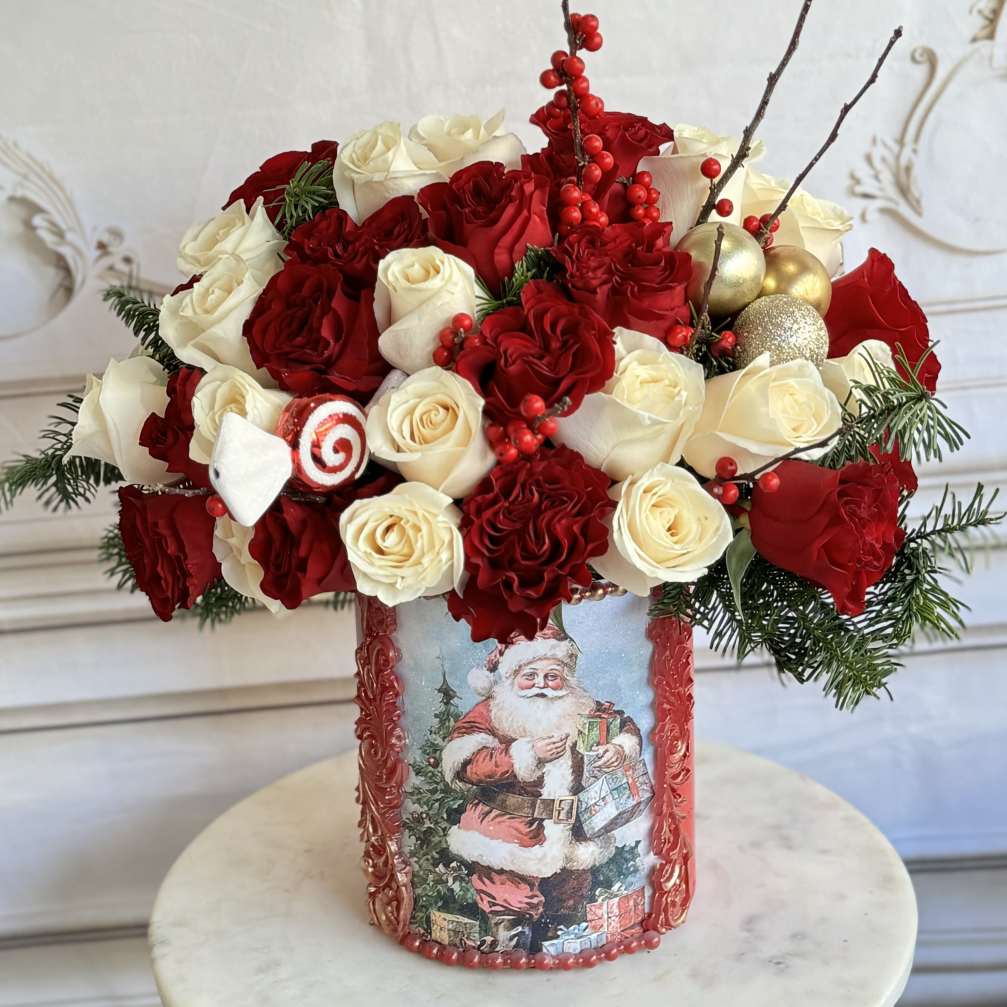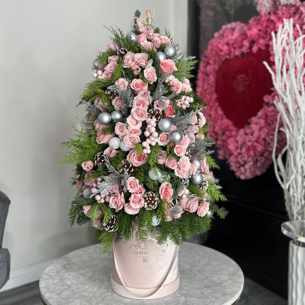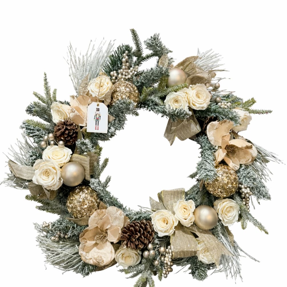 Price: $200.00 Blush Holiday Wreath Gift Set — Eternal Roses, Luxe Candle & Artisan Chocolate Product Tags: Same-day Delivery